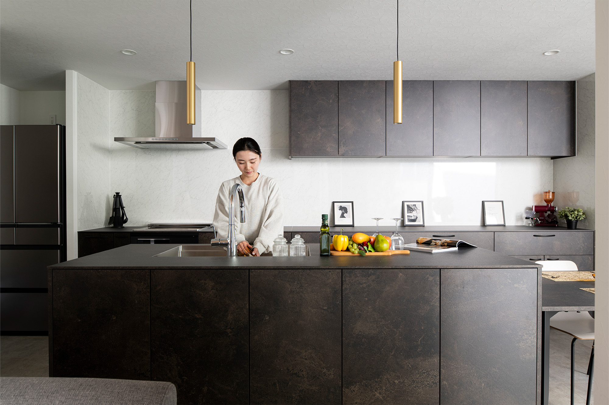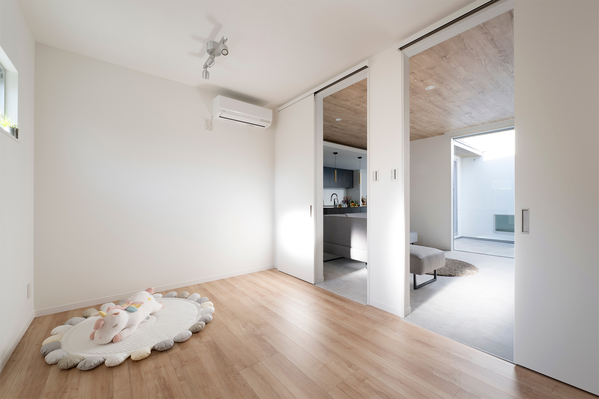 中庭は家族の生活の中でさまざまな使い方ができる場所です。小さなお子様が安心して遊べる庭として、休日に家族で過ごすアウトドアリビングとして、暮らしのシーンを豊かに広げてくれます。建物と庭が一体となることで、日常の時間をより楽しめる住まいとなりました。