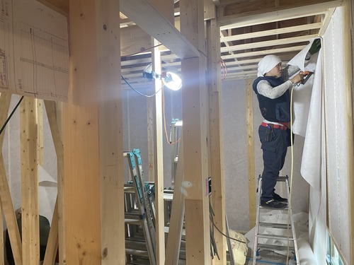 そして、昨日からはいよいよ断熱材の施工が始まりました。