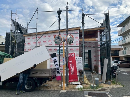 本日は朝から石膏ボードの搬入作業をしていたので、
