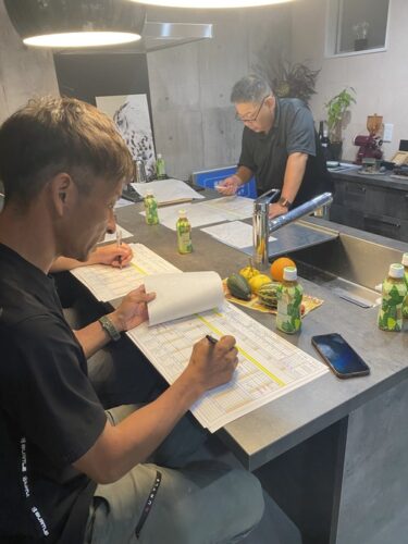 そして昨日、夕方からは、岸和田市で進める二階建て新築住宅の着工前打ち合わせを弊社ショールームで開催しました。(添付写真にあるように、多くの専門家が集まって真剣に打ち合わせをしている様子です。)