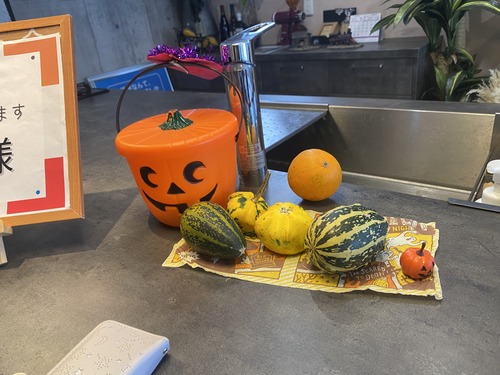 (添付画像3:打ち合わせスペースのカウンター。ハロウィンのカボチャが季節感を出していますね!)