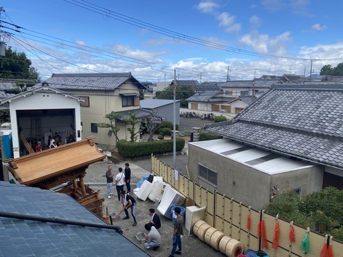 (添付画像にあるように、祭礼の片付け風景。地域の皆さんと協力して、また一年後のために準備です!)