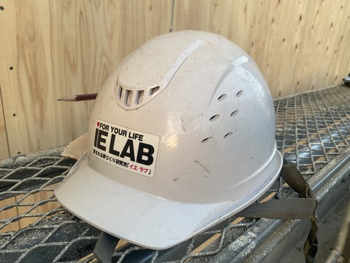 FOR YOUR LIFE IE LAB♡ のステッカーが誇らしい私のヘルメットです。このヘルメットが示す通り、私たちは**「あなたの人生のために」、一棟一棟、真摯に向き合っています。