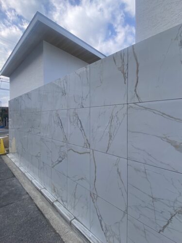 まず、目を引くのはその外部、アウターウォールの美しいタイル仕上げです。 シンプルかつモダンな建物のフォルムに、この洗練された大判タイルが、まるで一枚の絵画のように映え、洗練された佇まいを生み出しています。周囲の街並みにも調和しながら、確かな存在感を放つ。これこそ、私どもが目指す「永く愛される街並み造り」の一つの完成形です。