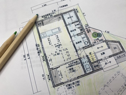 笹倉さんは、打ち合わせの前夜、図面に色鉛筆で手を入れる時間を大切にしています。