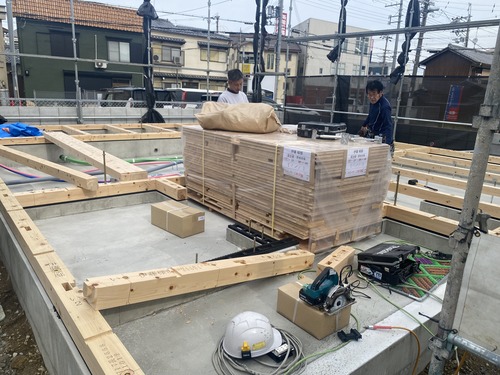 本日は「土台敷き」の工程です。
