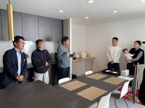 お引き渡し式では、スタッフや工事関係者も集まり、笑顔と拍手でS様を祝福させていただきました。