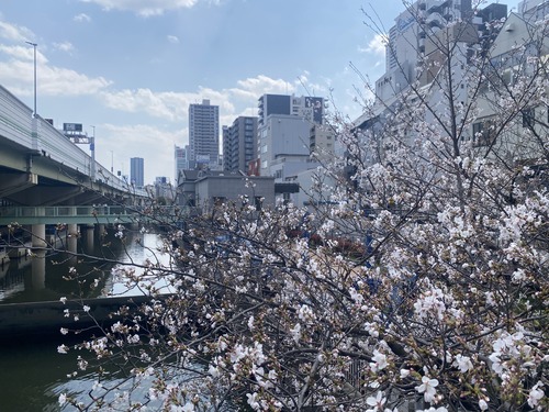 北浜駅からの道中、川沿いに咲き誇る桜を発見。