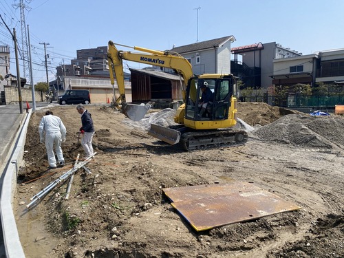 現場確認の後は、貝塚市久保で進行中の大規模開発現場へ。
