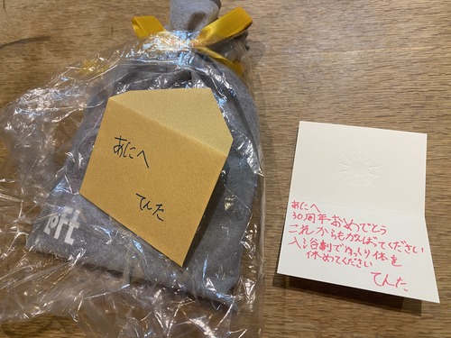 「兄へ 30周年おめでとう これからもがんばってください」
