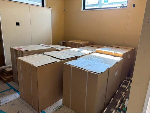 現場監督の松谷監督が、大切なお客様の荷物を自分の手で荷受けし、丁寧に現場へと搬入を行いました。その段ボールには、松谷監督の「絶対に傷つけさせない」という強い意志が感じられます(笑)